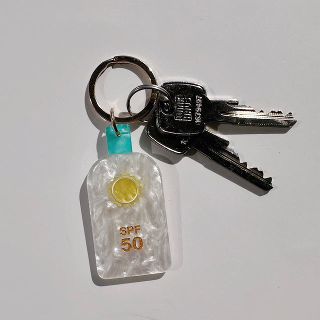 Sommergefühle to go! Der SPF 50 Schlüsselanhänger bringt Sonne, Schutz und Style in deine Tasche – ein Must-have für Sonnenanbeter*innen mit Humor.